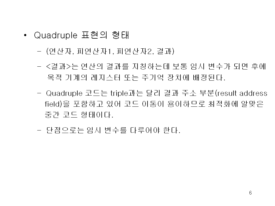– Quadruple 코드는 triple과는 달리 결과 주소 부분(result address